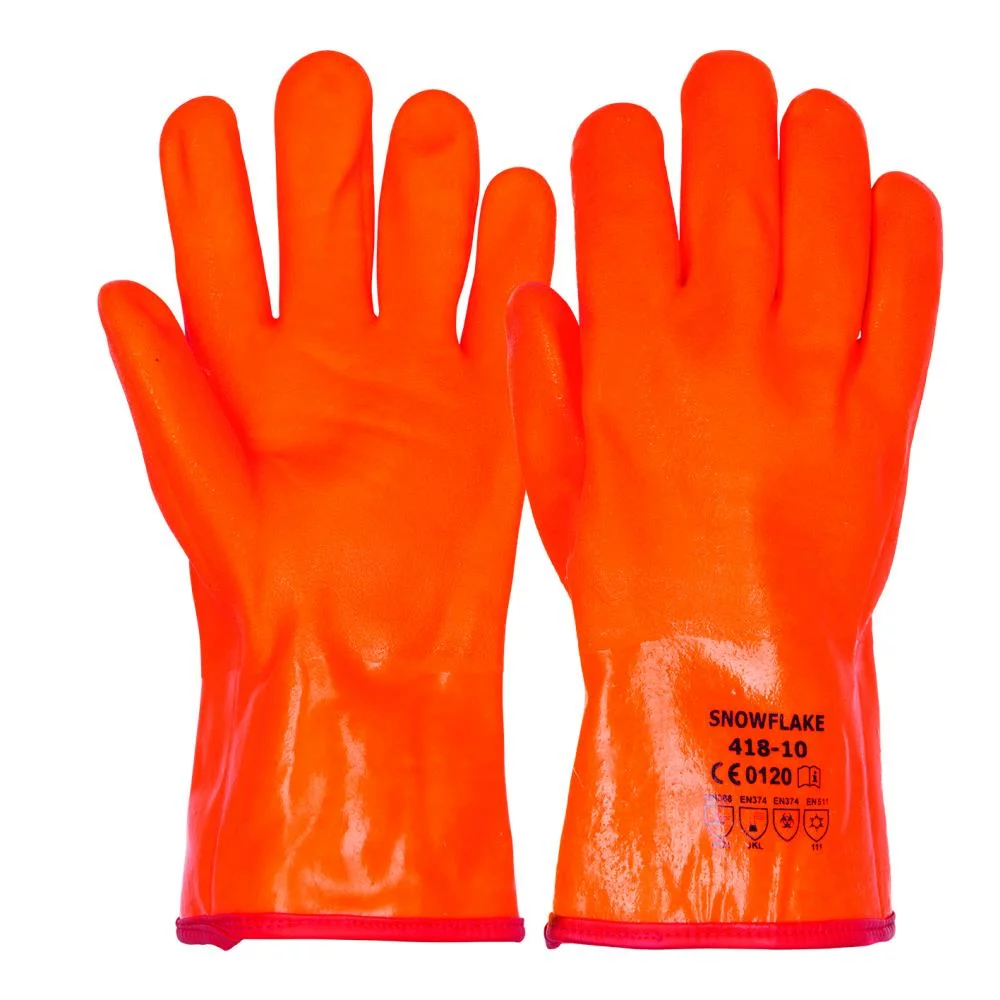 Snowflake Größe 10, Leuchtorangener, doppelt gerauter PVC Handschuh , Innenfutter aus Baumwoll/Jersey , 30 cm lang, 2 mm stark,