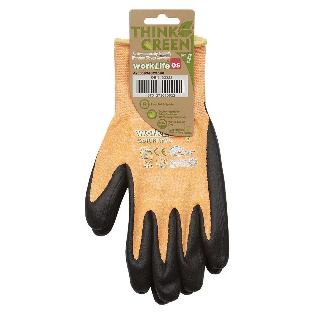 Think green Soft Nitrile Größe: 8-11, RPET/Polyester Feinstrickhandschuh mit weicher Nitrilschaumbeschichtung, Handrücken frei, Strickbund, ÖKO Tex 100 zertifiziert
